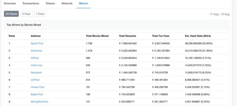 在TopStatistics里我們還可以看到不同的排行榜數據,比如礦工排名、Gas使用排名等等。