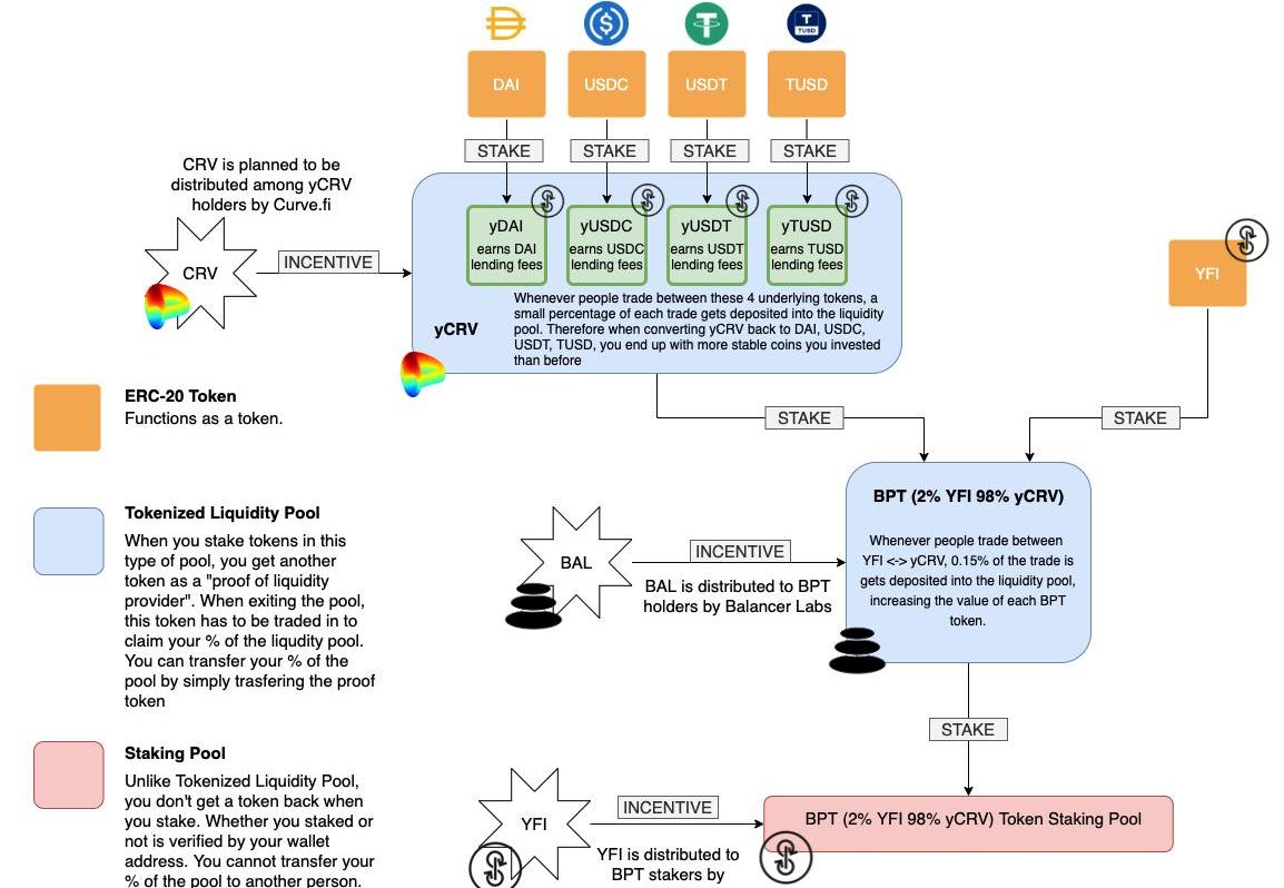 賺取yCurve費,借貸費和Balancer費。賺取BAL,CRV,YFI作為獎勵。擁有超過1000BPT將使您有能力抵押YFI以獲得yCRV。