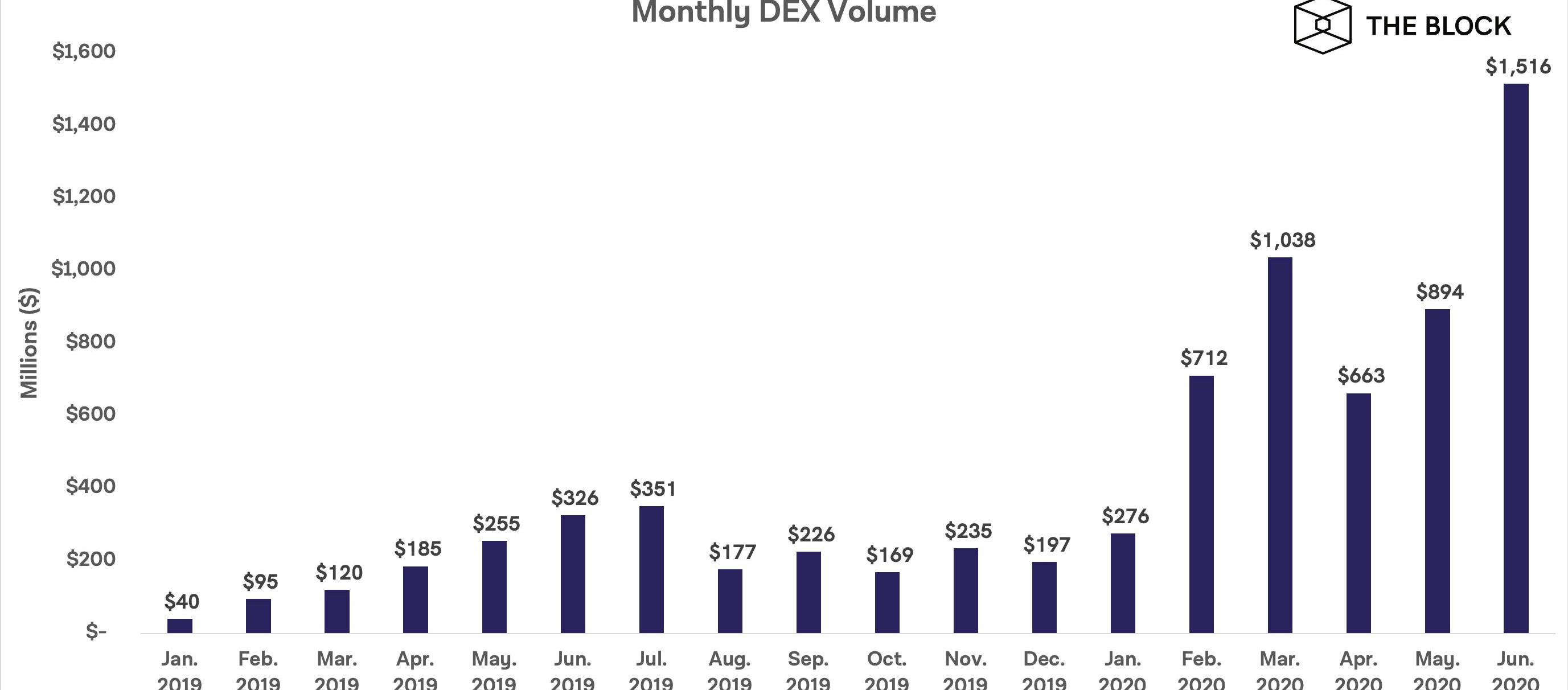 此次上線恰逢去中心化現貨和衍生品交易行情火熱。6月時,去中心化交易所的交易量達到有史以最高點,比5月增加了70%,比3月的歷史新高提高了46%。