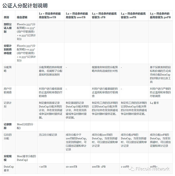 - 一旦申請人被評為公證人,其結果將被加入分配標準(https://github.com/filecoin-project/notary-governance/blob/main/notaries/templates#notary-allocation-plan-rubric)。這將考慮申請人作為公證人的優勢以及他們的以往記錄和分配計劃的穩健性以確定最終分配份額(https://github.com/filecoin-project/notary-governance/blob/main/notaries/templates#final-allocation-amount)。