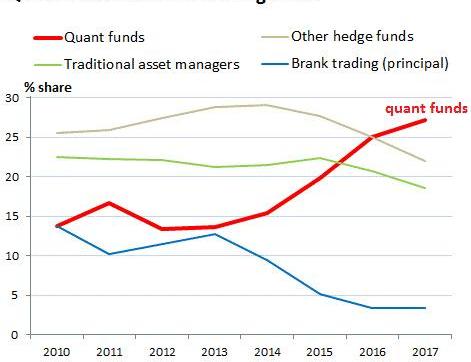 算法交易也誕生于美國,和金融市場的電子化密不可分。在20世紀70年代大量的交易所開始把委托指令流改成使用計算機系統進行自動化處理,這樣每一筆的交易訂單都可以被計算機程序所捕獲,從而獲得下單的時間、價格、數量等多方面信息,為算法交易提供了最主要的數據來源。算法交易的興起,使得市場訂單中很大部分的訂單都按照算法執行,也顯著提升了市場信息傳播效率。