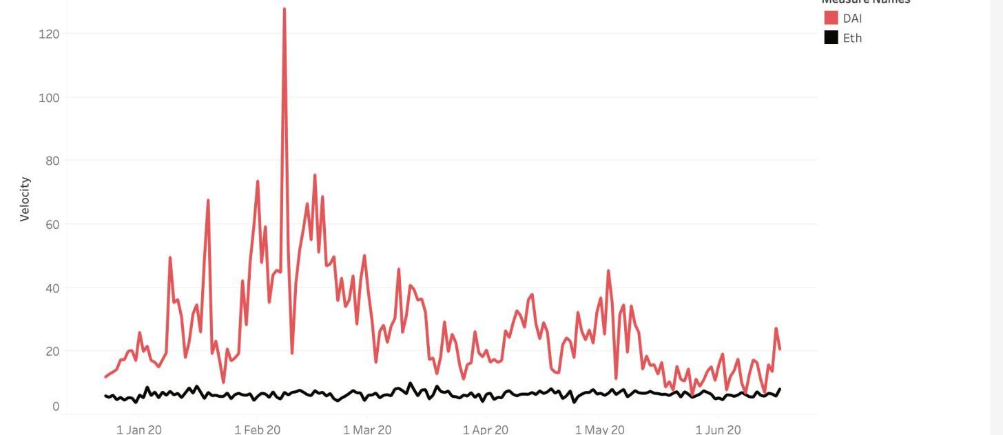據報道,其他穩定幣如DAI的使用也比以太坊更多,這可以從圖表中體現的代幣活躍度可見。但是,這是可能的,因為用戶將ETH放在錢包中而不是經常移動。