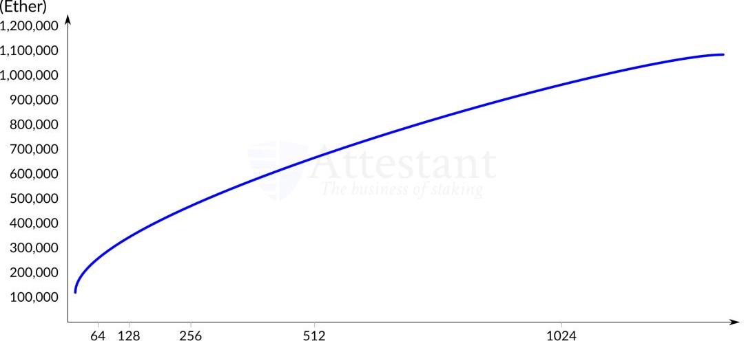 Eth2有自己的發行機制。區塊的生成更具規律性,即每個12秒的時隙最多生成一個區塊。盡管如此,每個區塊的生成過程中積極保護網絡安全的驗證者總數決定了該區塊的獎勵。?