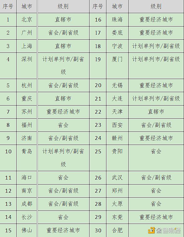 表3-1 中國城市區塊鏈綜合指數評估城市列表