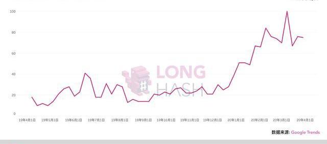 LongHash在4月9日表示,根據谷歌趨勢數據,從12月初到3月中旬達到峰值,公眾對關鍵詞"比特幣減半"的關注度增加了4倍多。