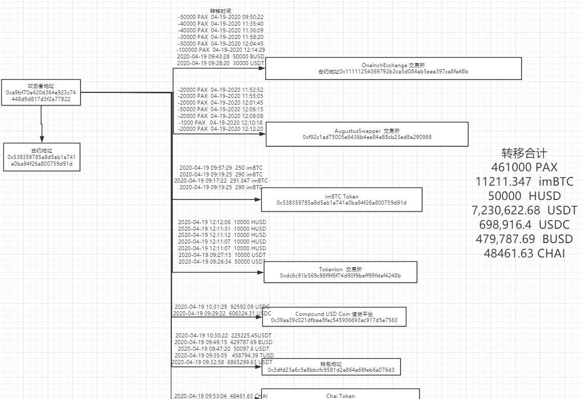 據成都鏈安反洗錢合規和調查取證系統追蹤統計,目前?Lendf.Me?損失已超2500萬美元,完整攻擊過程復盤如下: