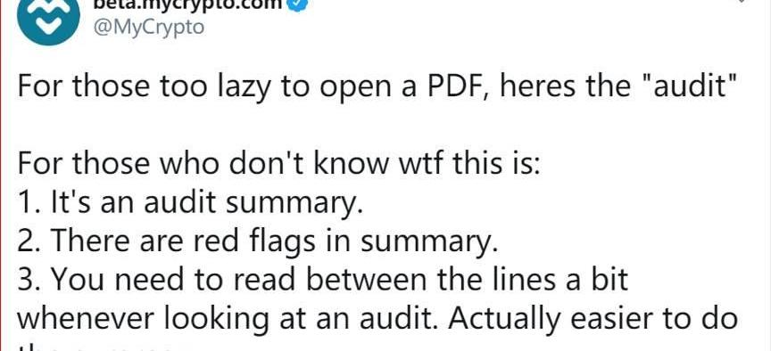 9作為社區一個整體,我們需要注意,即使是名頭最響亮機構所做的審計報告,也不意味著是安全的。也許還更不安全。