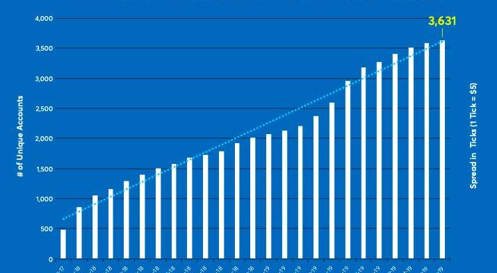 從比特幣期貨的日均交易量來看,比特幣期貨的受歡迎程度是顯而易見的。2019年,CME比特幣期貨的日均交易量相較于2018年增長了75%。以貨幣計算,比特幣期貨的日均交易量為6370份,累計價值約1.2億美元。CME的用戶也在穩步增長,截止2019年12月,CME比特幣期貨的用戶數量達到3631,這代表著機構對于比特幣衍生品的興趣日益濃厚。