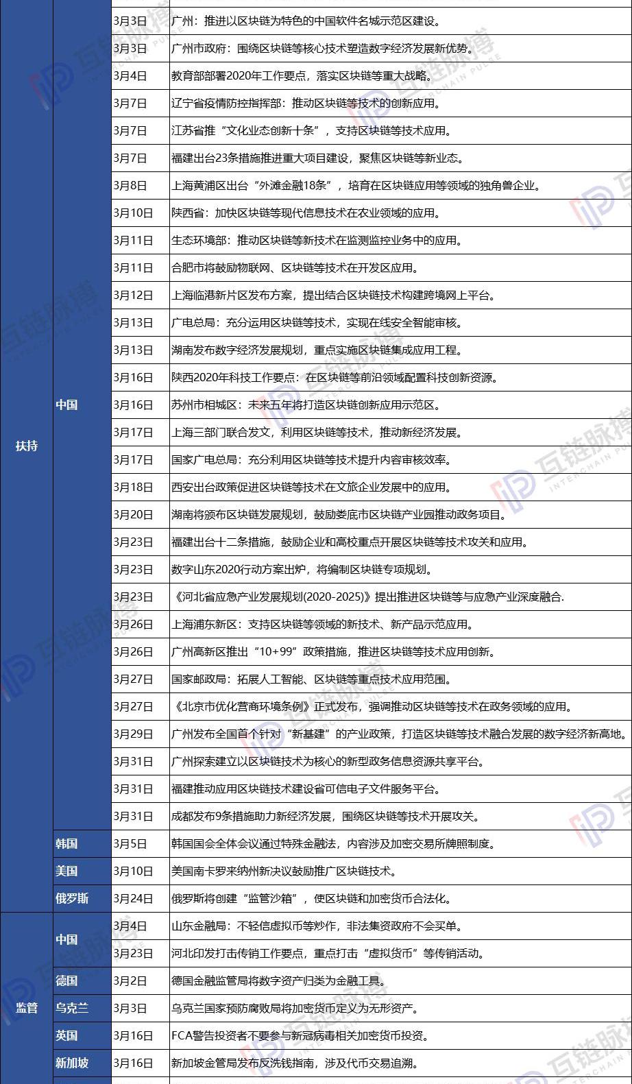 互鏈脈搏2020年3月份區塊鏈政策信息統計: