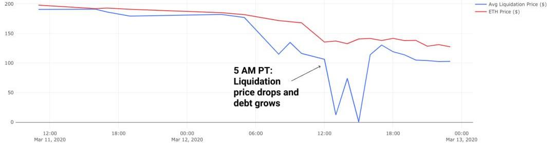 太平洋時間3月12日上午5點,ETH130美元,系統債務開始