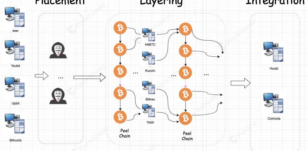 通常情況下,黑客在攻擊得手后,洗錢流程大體分為三步: