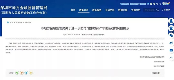 同時,國內的相關監管防范也正在升級。發稿當日,深圳市地方金融監管局又發風險提示,打擊“虛擬貨幣炒作”之風,對其非法活動進行清理整治。