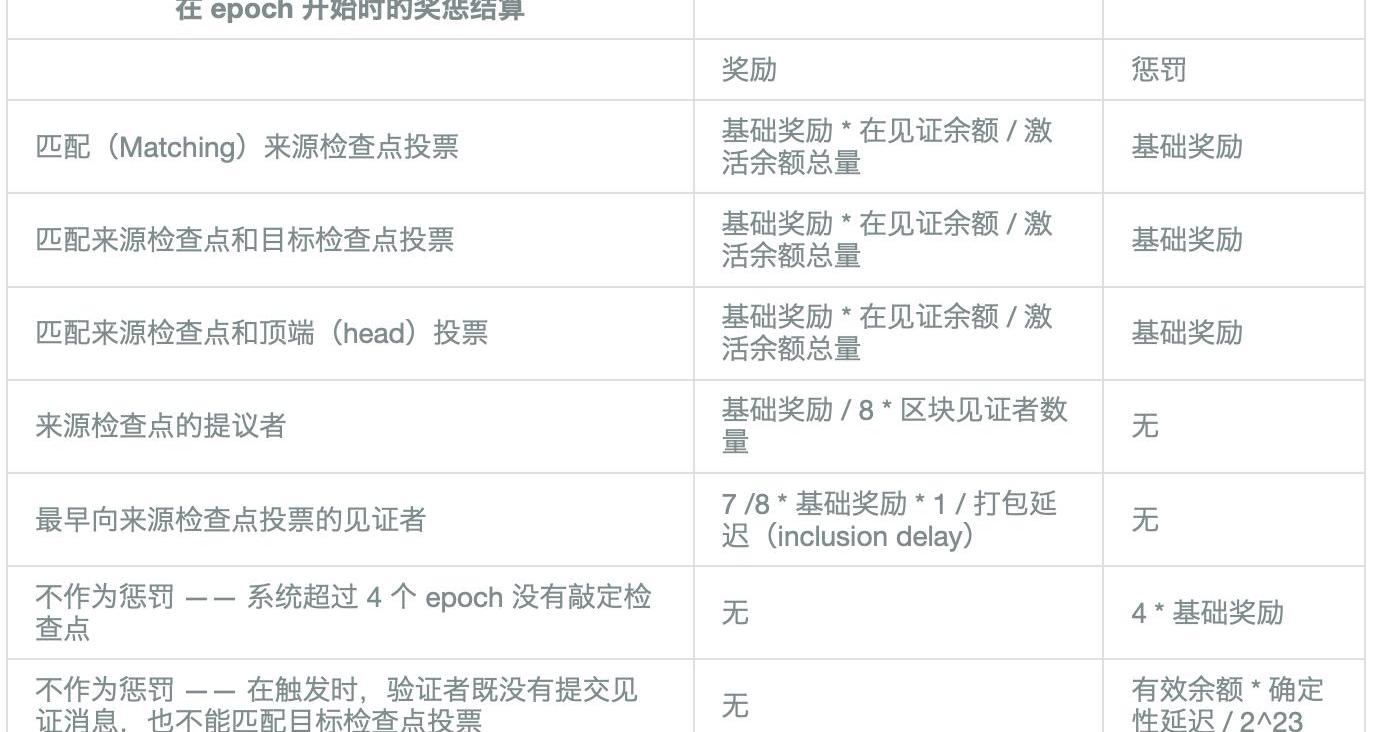 活躍的,才能獲得獎勵和/或懲罰。在退出系統之前,遭到罰沒的驗證者也會進入這個流程,但是只會在進行FFG相應結算時受到懲罰。