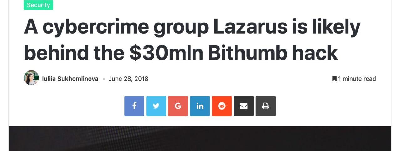 根據公開披露的信息,2018年4月后對外承認被盜取數字資產數額較大的交易所主要有Coinrail、Bithumb、ZAIF,這些日韓交易所被盜都曾經被猜測認為與Lazarus相關。當然,我們也不排除一些交易所盡管被盜,但是并未對外披露,而是直接向執法部門報案。
