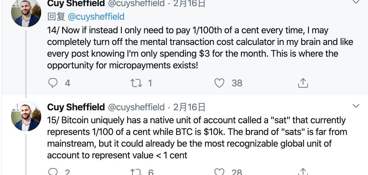 CuySheffield一直在考慮比特幣和加密貨幣。在Coinbase首席執行官BrianArmstrong最近發布的一條推文的刺激下,他進行了一場推文風暴,他對比特幣使用閃電網絡進行微支付的能力提出了積極的看法。