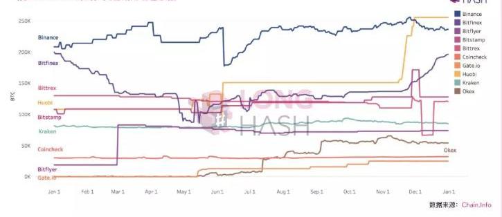 火幣的情況可能是最值得關注的。2019年內,火幣冷錢包的比特幣持有量從第五位躍升至第二位。據稱,PlusToken的大部分交易都是通過火幣處理的,如果屬實,這或許就解釋了火幣的排名出現大幅躍升的原因。