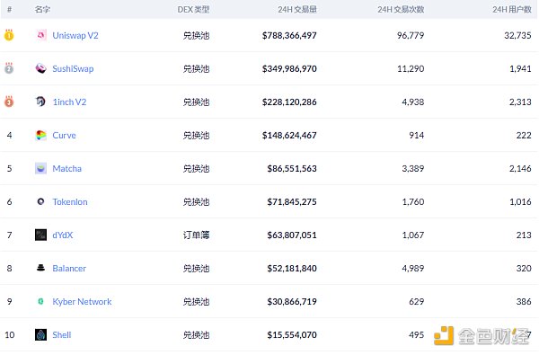 Uniswap交易量占以太坊Dex交易量的41.26%