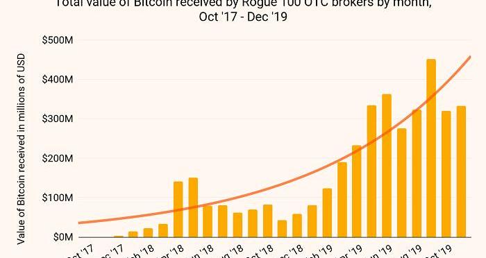 雖然很難估計從犯罪錢包向場外交易經紀人發送加密貨幣的具體比例,但我們的分析表明,執行比特幣交易中很大比例的場外交易經紀人正在接收非法資金,而且這些行為方式也暗示他們希望隱藏交易性質。