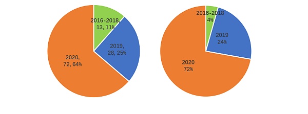 從月份分布來看,2020年政府區塊鏈項目招標發布符合“上半年準備、下半年集中”的整體特征。除了政府工作安排的因素,疫情的影響也不容小視,2020年上半年政府將大量精力投入抗疫防疫中,許多公共設施建設進度相應放緩,招標項目發布較少。