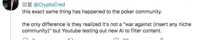 唯一的區別是,他們意識到這不是“反對的戰爭”,而是YouTube測試了新的AI用于過濾內容。