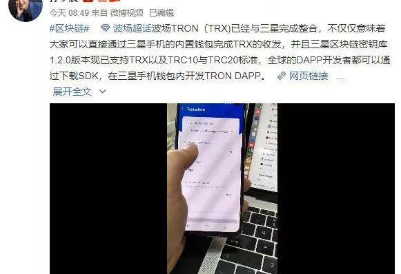 8月30日,三星宣布將33種數字貨幣添加到其旗艦GalaxyS10手機支持的資產列表中,并將自動為手機用戶生成錢包。三星手機里的區塊鏈程序可實現付款、數字簽名及加密貨幣存儲和傳輸三種功能。同時三星還與孫宇晨的波場合作,雙方完成了區塊鏈密鑰庫整合工作。