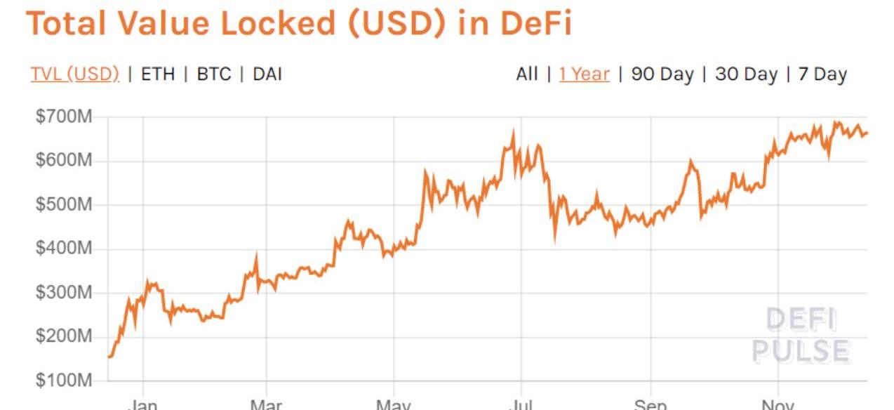 2019年被很多人稱為DeFi之年,從2019年1月1日至12月13日,各類DeFi應用中抵押的資產總額從2.75億美元增長到6.65億美元,增長了240%有余。