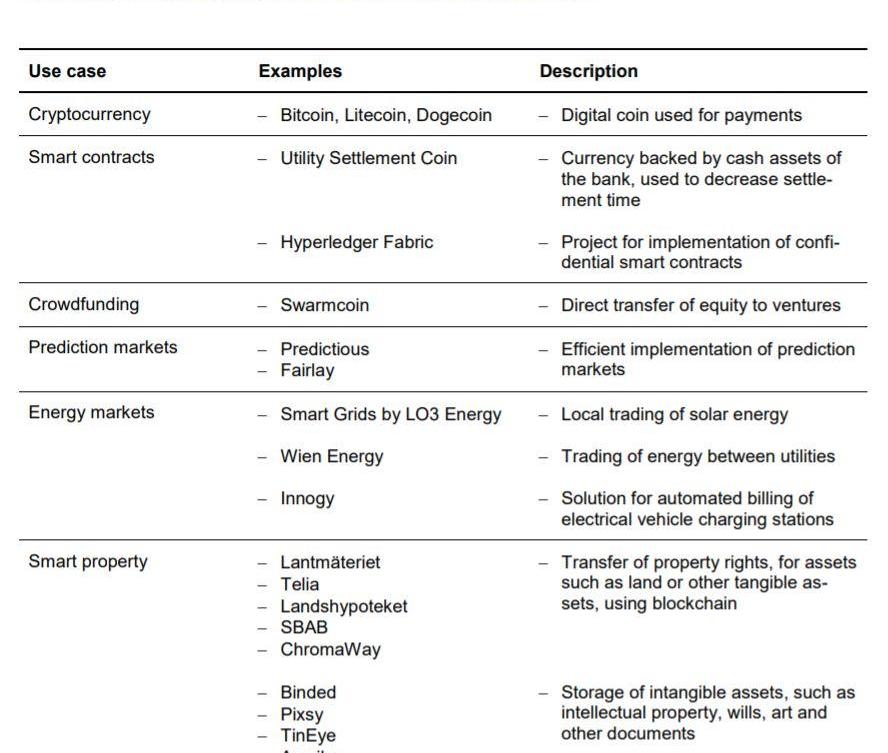 (Source來源:由德國慕尼黑工業大學*TUM,德國能源項目StromDao,以及法蘭克福區塊鏈中心聯合攥寫的區塊鏈產業應用分類舉例,尤其闡述了區塊鏈中在能源市場以及資產轉移和存儲中的應用)