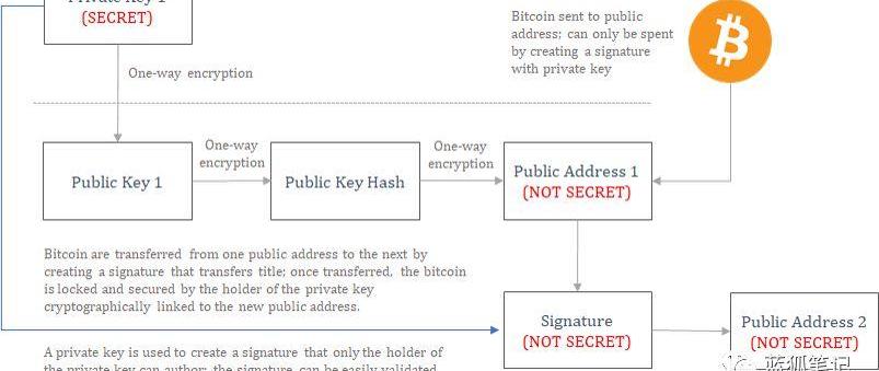 當有效交易被廣播出去,比特幣被轉移到特定的公開地址。公開地址源自于公鑰,而公鑰派生于私鑰。公鑰和公開地址可以使用私鑰計算出來,但私鑰無法通過公鑰和公共地址計算出來。它是一種通過強大的加密技術保護的單向功能。公鑰和公開地址可以共享,不會透露任何私鑰信息。當比特幣轉移至公開地址,它實際上被鎖定在保險箱中,為了解鎖保險箱以花費比特幣,必須通過相應私鑰生成有效簽名。