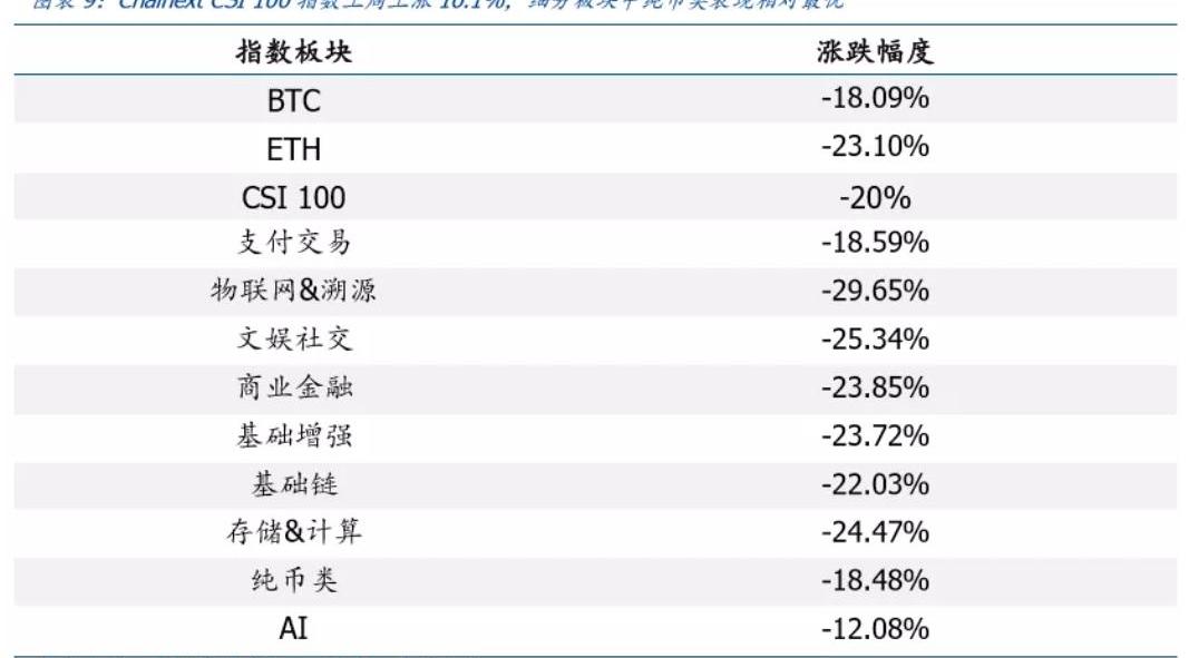 4.上周行情回顧:ChainextCSI100下降20%,細分板塊中AI表現最優