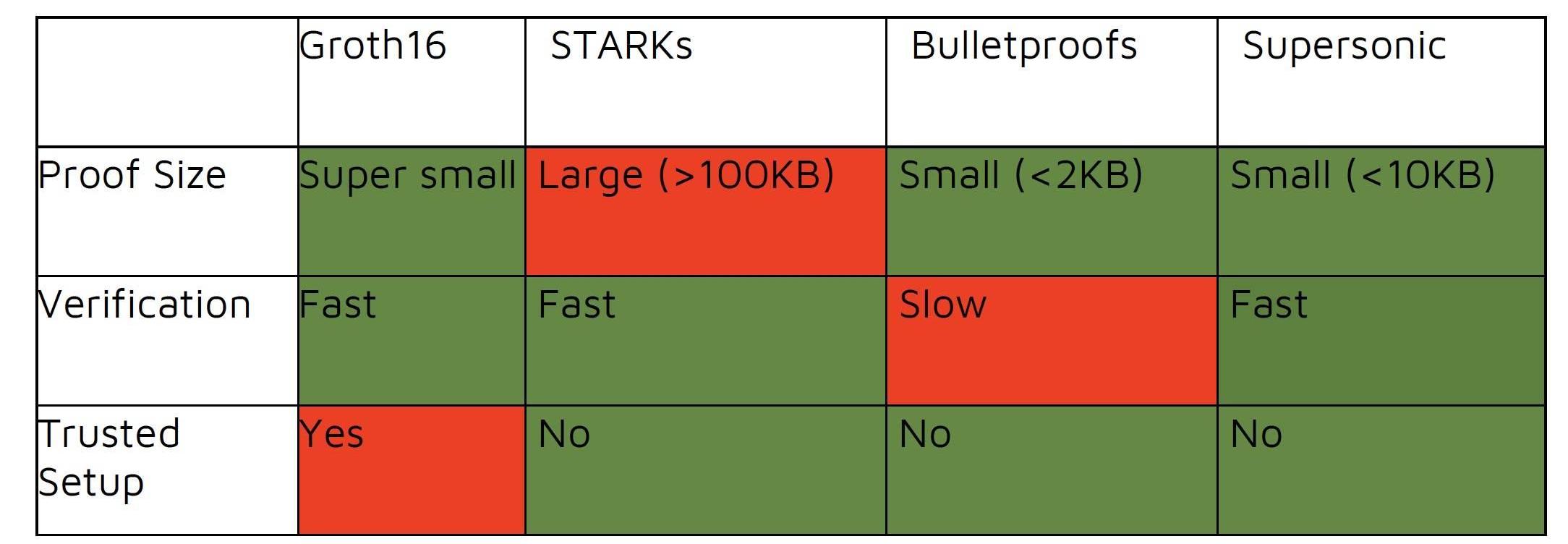 中等復雜的交易,我們可以用Bulletproofs,而我們現在所使用的Supersonic,不管交易是否復雜,都是適用的。