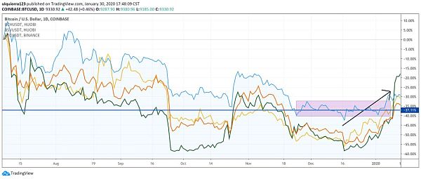 美國對伊朗高級指揮官蘇萊曼尼在伊拉克巴格達機場附近實施斬首行動,美伊兩國的緊張危機仍在持續升級。受突發事件影響,比特幣異動激活市場,提前觸發春季躁動行情。