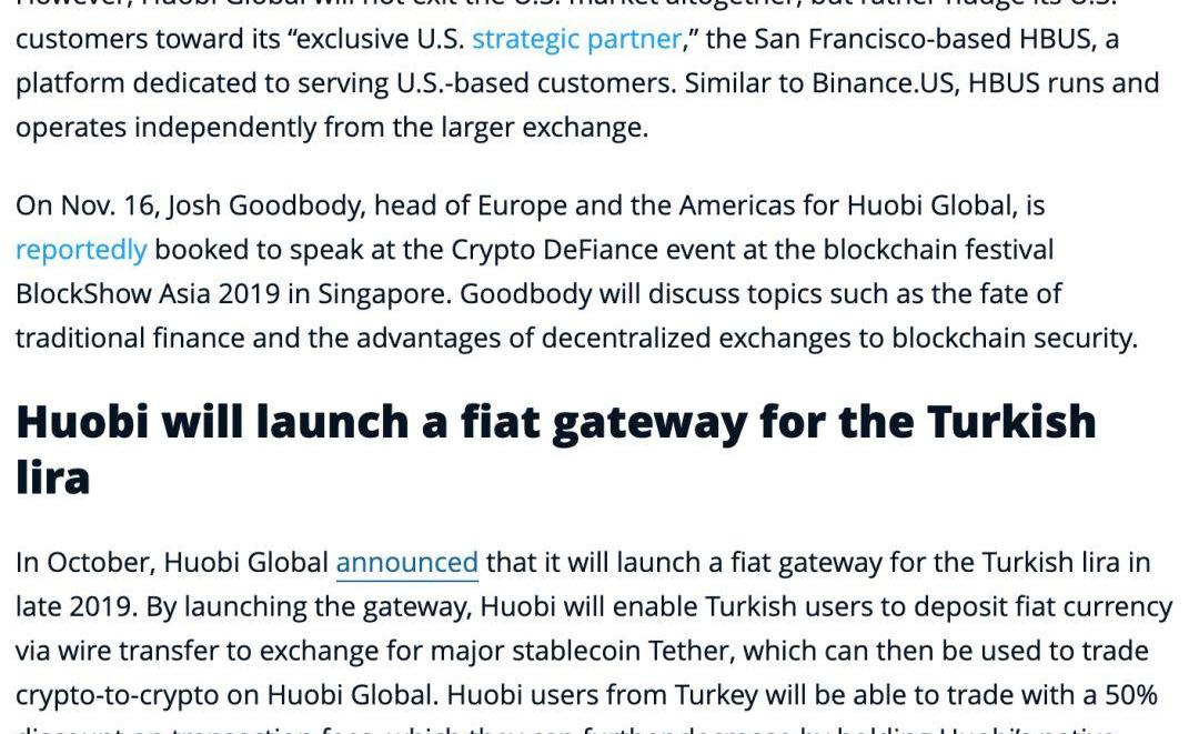 另外,火幣也在開拓各國的法幣入口,年末將為土耳其里拉推出法幣網關,允許土耳其用戶通過電匯該國法幣獲得USDT穩定幣。