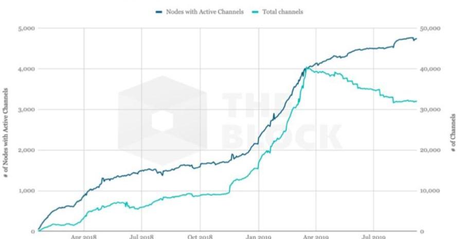 在主網上線以來不到20個月,閃電網絡目前共有32,200個通道,4,800個活躍通道節點,承載價值總量為860萬美元。從2019年1月到2019年4月,節點的增長最為迅速,這可能與NodeLauncher的以及Casa的硬件LightningNode的發布有關,使得非技術用戶運行一個節點變得更加容易。