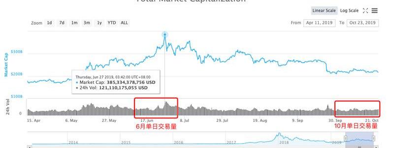 CoinMarketCap?數據顯示,今年六月份平均單日交易量約為820億美元,今年10月單日平均交易量為530億美元,跌幅約為35%。