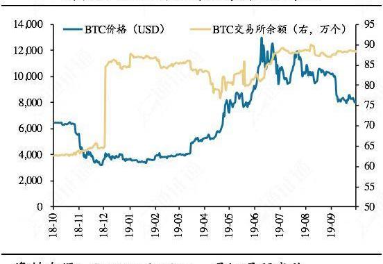 反彈乏力,震蕩下行。本周數字通證總市值為2209.1億美元,下降3.0%;日均成交量為536.5億美元,下降6.0%;日均換手率為23.8%,下降1.3%。BTC現價7973美元,跌幅為4.2%;本周BTC日均成交量為150億美元,日均換手率為10.2%。ETH現價173.6美元,跌幅為4.9%,月跌幅為17.9%;本周ETH日均成交量為73億美元,日均換手率37.7%。本周交易所BTC余額為88.41萬個,減少0.13萬個;交易所ETH余額為925萬個,減少20萬個。BICS二級行業中,項目服務市值及通證數量下降明顯。
