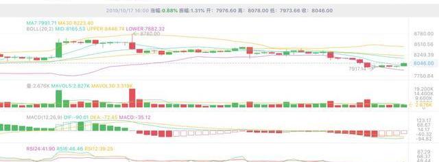 BTC延續弱勢行情,一度跌破8000美元,目前有所反彈重新站上整數關口。1小時線和4小時線均趨于穩定;日線處于弱勢區間,但出現觸底反彈信號。BTC支撐位7900USDT,壓力位8300USDT。