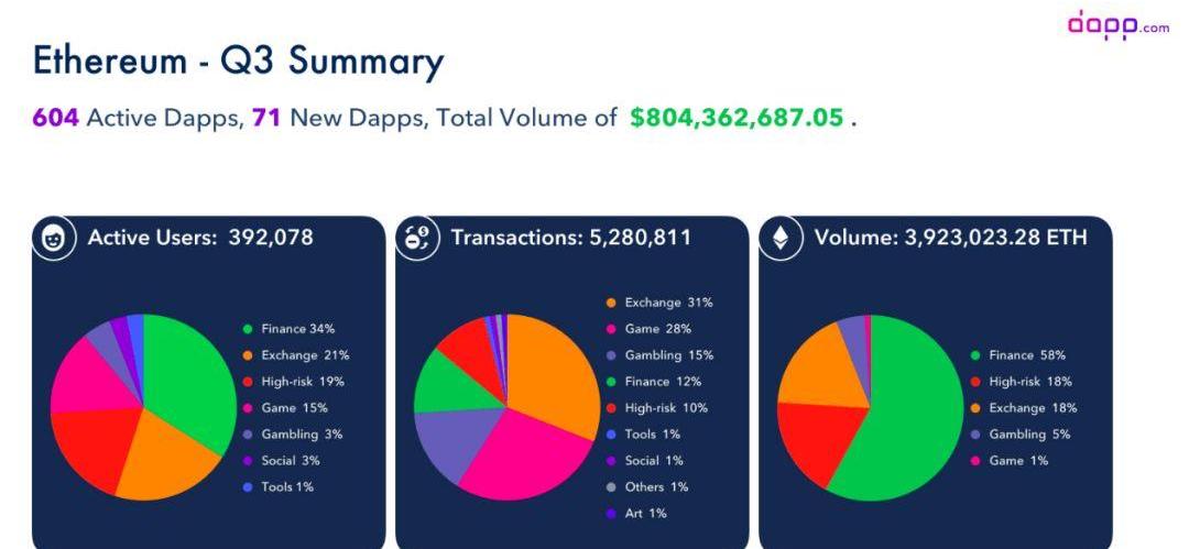 不過盡管如此,根據dappexplorerDapp.com的最新季度分析報告顯示,還是有超過一半的交易與加密貨幣有關。