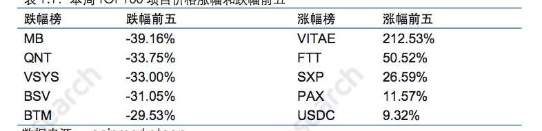 。2019年9月29日,整體來看,24h成交額較上周同期下降8.24%,本周TOP100項目中有33個項目24h交易額上漲,本周有24個項目24h交易額漲幅超過20%,12個項目漲幅超過50%,其中漲幅最大為NPXS,漲幅達525.65%。本周TOP100項目中有67個項目24h交易額下跌,本周32個項目24h交易額跌幅超過20%,7個項目跌幅超過50%,其中跌幅最大為MONA,跌幅達68.82%。