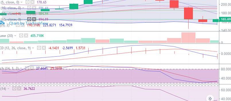 ETH跌至150區域,在布林帶下軌止住跌勢形成反彈,當前走勢反彈力度較為強勢,且STOCH指標有形成金叉的姿態,一旦走勢突破170位置,則將繼續向上試探180位置,MACD指標向下運行,RSI指標向上,今日走勢形成震蕩上行的趨勢,上方壓力較多,那么操作建議高空低多,關注上方阻力170-180位置,下方支撐160-150位置。