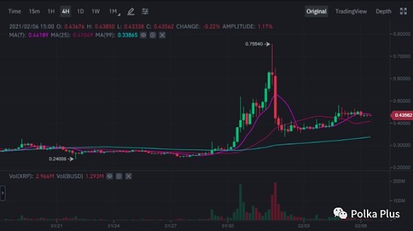 DOT代幣的價格在一月份上漲了170%以上,從市值排名的第四個月起,XRP就被趕下了一段時間。在撰寫本文時,DOT代幣的交易價格為20.1美元,總資本超過180億美元。