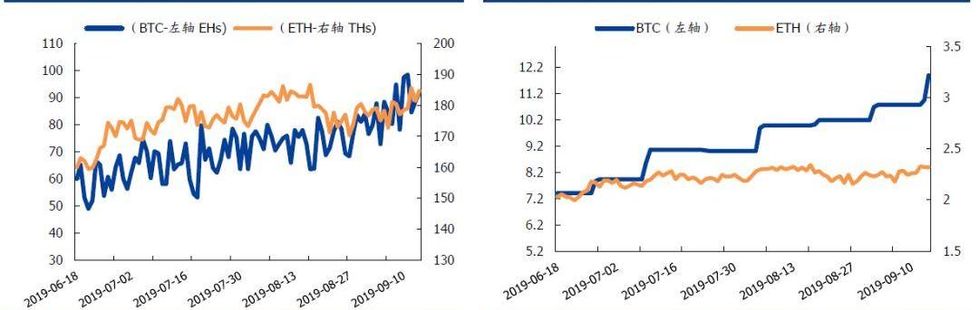 上周BTC日均算力達到90.5EH/s,環比增加11.1%;ETH全網日均算力達到181TH/s,環比增長2%。