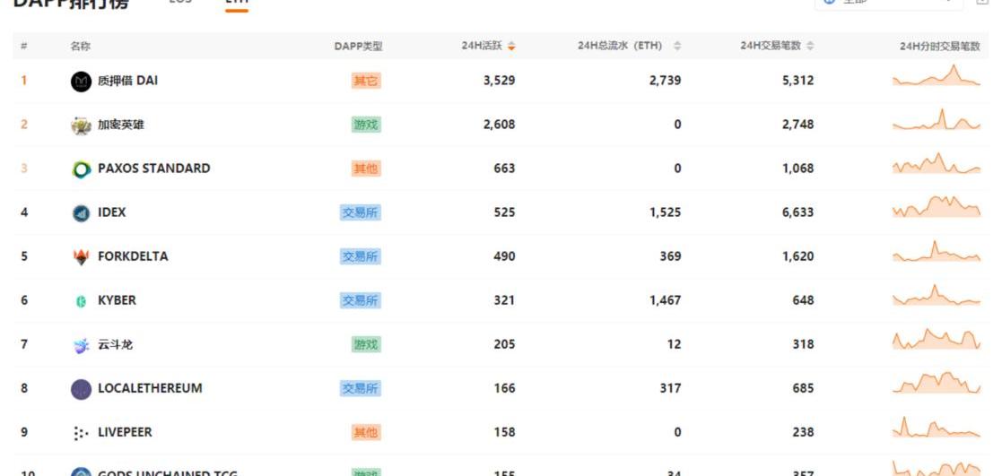 觀察Midu統計數據,24小時ETHDApp整體活躍程度有所上升。其中,質押借DAI的24小時總流水2,739ETH,較昨日明顯增加,交易平臺IDEX的24小時總流水1,525ETH,較昨日有所增加;游戲加密英雄的24小時活躍用戶數2,608,較昨日有所增加;穩定幣PaxosStandard的24小時交易筆數1,068,較昨日有所增加。