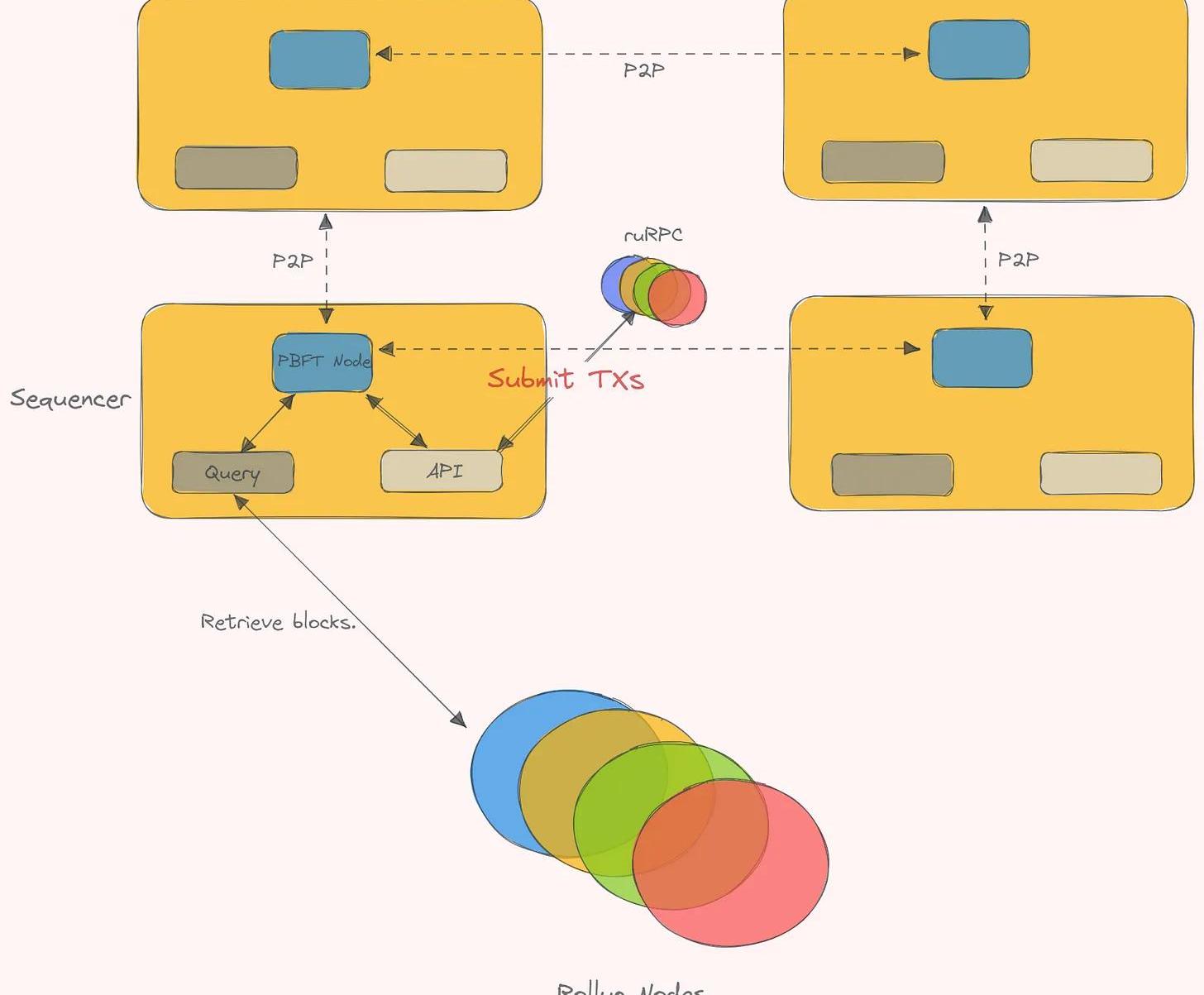 一個點對點層,允許排序器從其他排序器接收交易并在構建后傳播區塊。這個步驟對于確保共享排序器在多個rollup之間有效地工作至關重要。