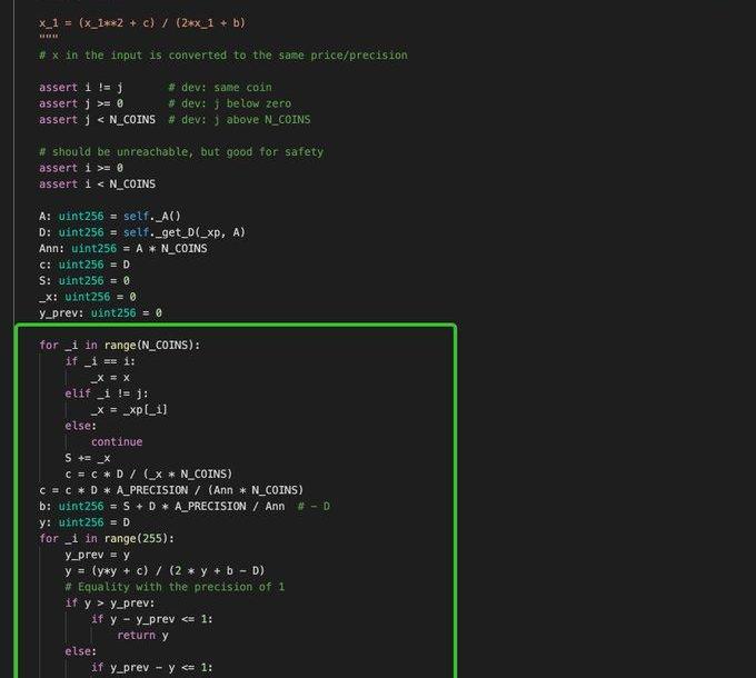 至于y值,curver提出了一種新的找到新y值的方法。我們也不使用牛頓法,因為它是一個迭代過程,只能給出近似解,而是推導出一個新y的精確公式。采用更容易求解的逼近解,來替代牛頓迭代,從而極大地降低gas。