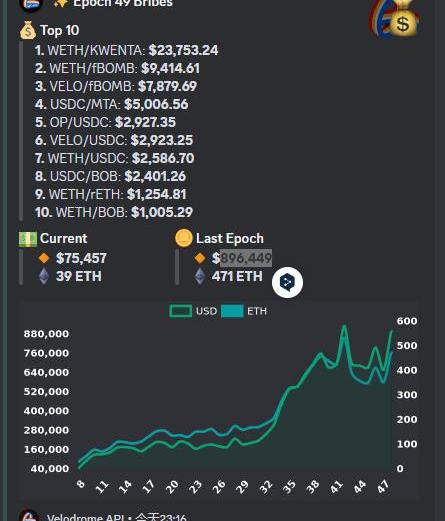而從過往數據來看,Velodrome的賄賂金額已經連續15周站上30萬美金,近12周更是都在50萬美金以上。