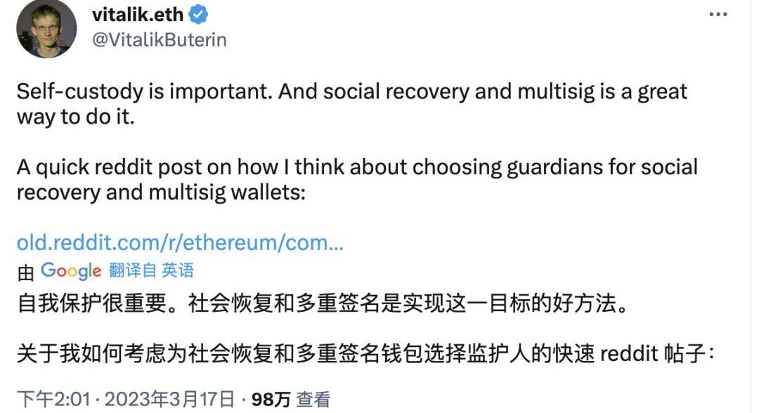 XRP/HKD-1.82%以太坊聯合創始人VitalikButerin3月曾發文稱,自托管非常重要,社交恢復和多重簽名是實現這一目標的好方法。并表示在加密支付方面使用ERC-4337賬戶抽象錢包會更加便利。