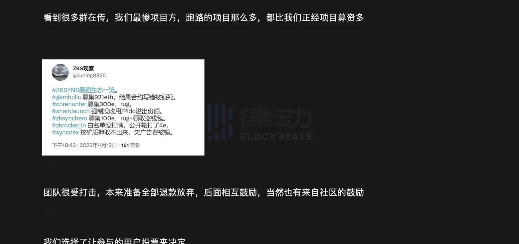 團隊表示很受打擊,考慮全部退款放棄,最后因一些社區成員的挽留,而選擇了讓社區用戶參與投票來決定,是否要全部退款,放棄繼續運作項目。