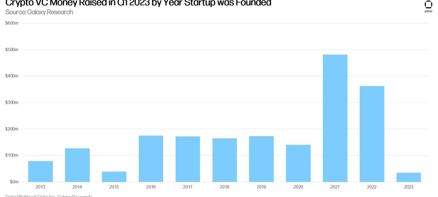成立于2021年和2022年的加密初創公司在2023年第一季度獲得了最多的風險投資。