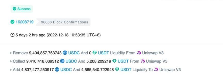 以下是做市商如何管理Uni-V3流動性的示例。該機器人通過代幣交易并將其重新添加到池中,來消除交易對流動性的不平衡,確保當前價格處于可接受的流動性范圍內。機器人每天可能多次執行這種平衡操作,每天的收入高達2000美元。