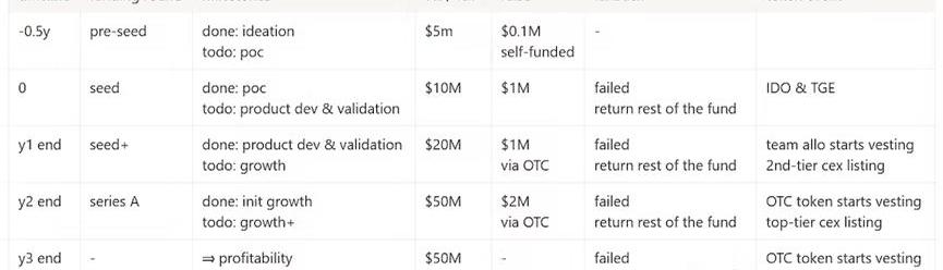 開始時:1000萬美元估值(10%+15%預定;預留75%作其他用途)到第一年年底:估值2000萬美元,需要通過場外銷售籌集100萬美元